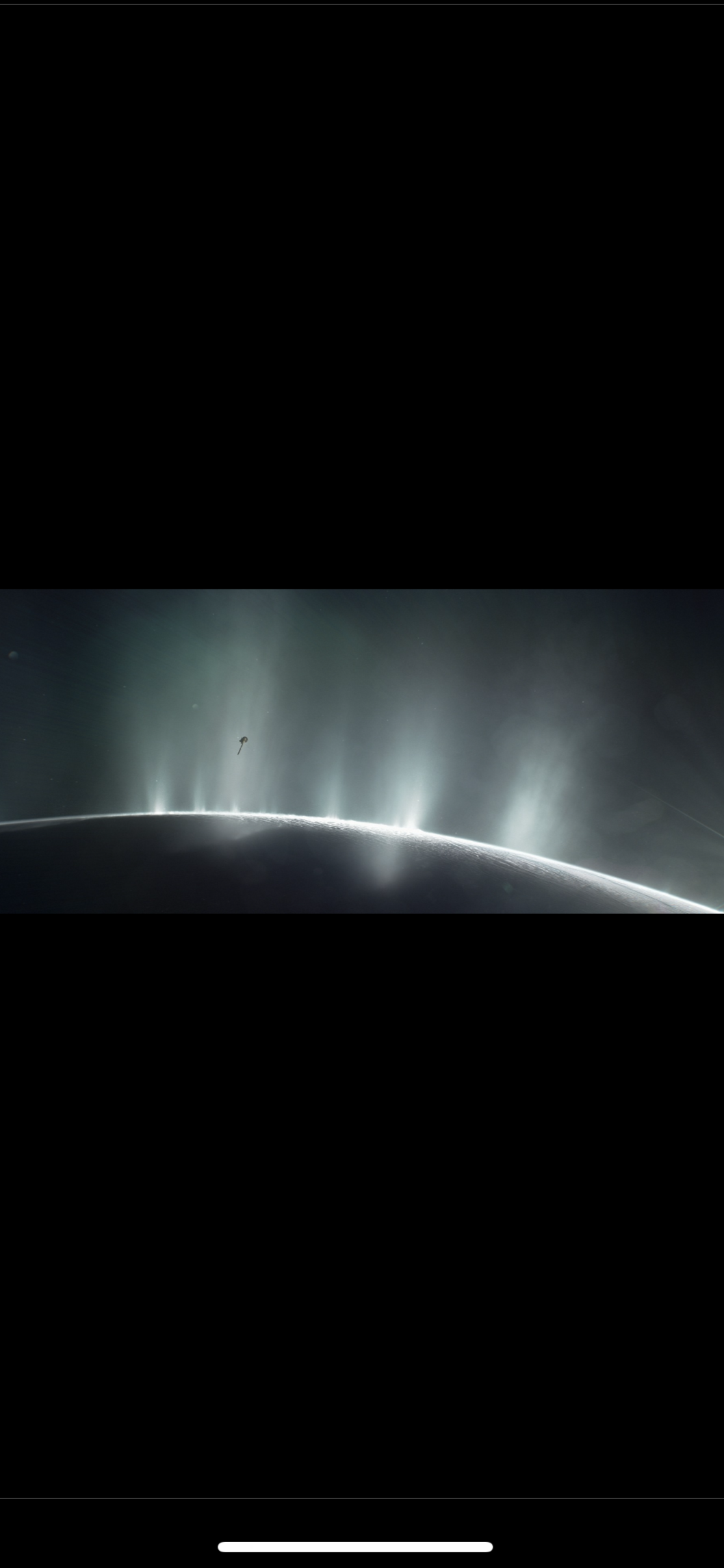Dec 2025 Silicon Valley Astronomy Podcast link -EnceladusEnceladus' water plumes shoot water vapour and tiny grains of ice into space. They originate from the 'tiger stripe' surface fractures at the moon's south pole, and create the faint E-ring, which traces the orbit of Enceladus around Saturn. Cassini has found that relatively large, salt-rich ice grains dominate.